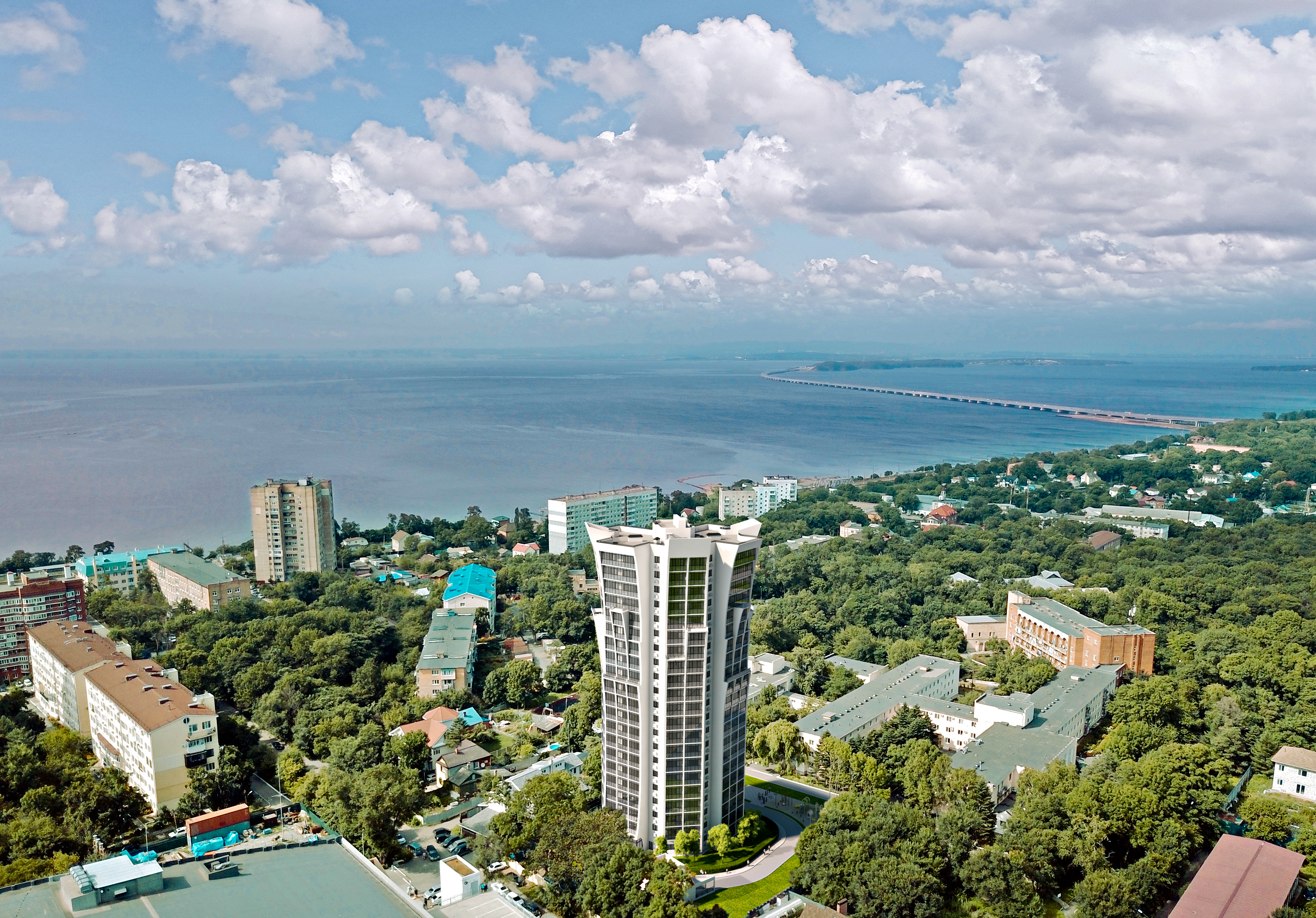 Жилой дом бизнес-класса с уникальной архитектурой расположен в пригороде Владивостока, в районе ул.Полетаева 23, вблизи ТРЦ «Седанка-сити».